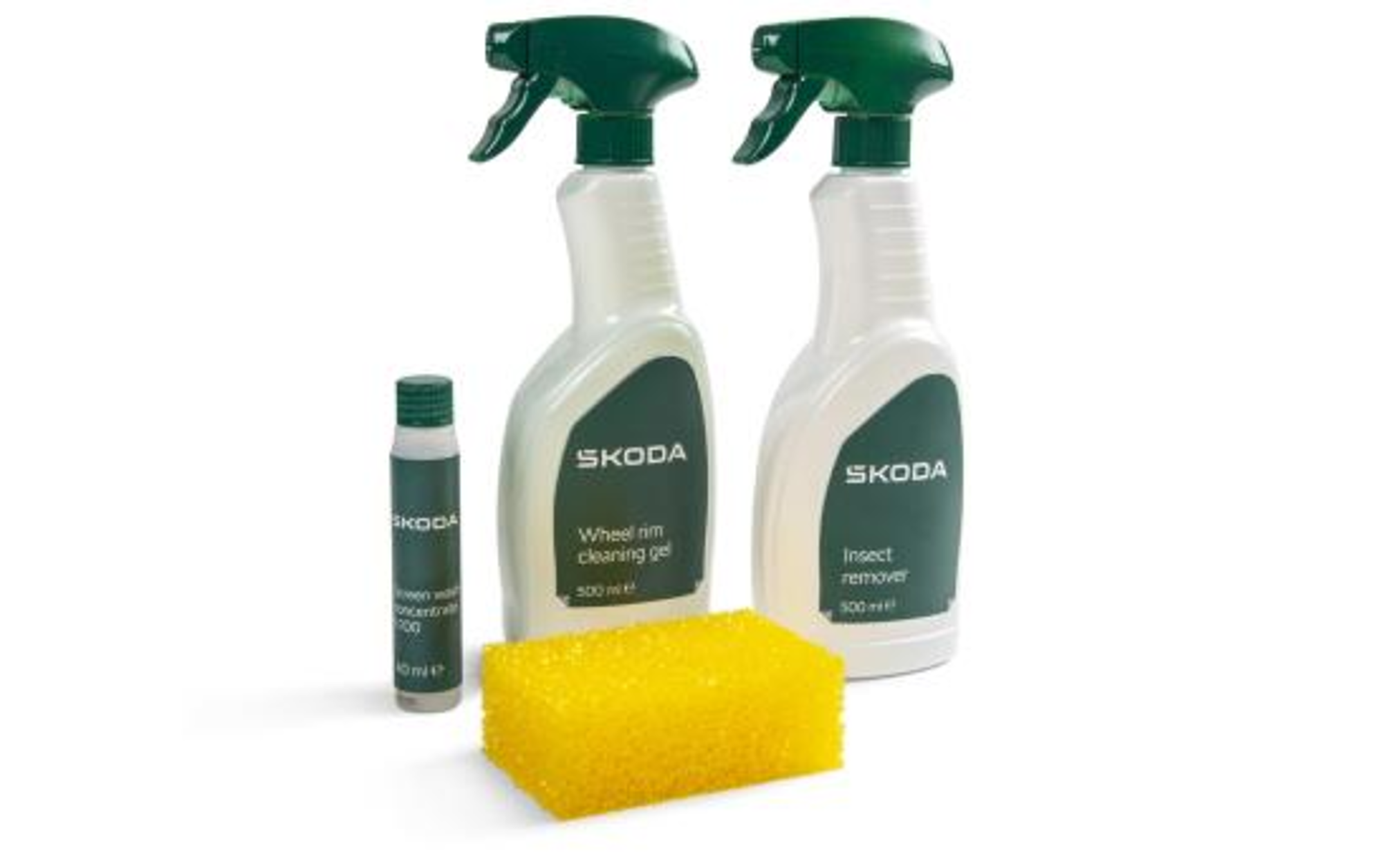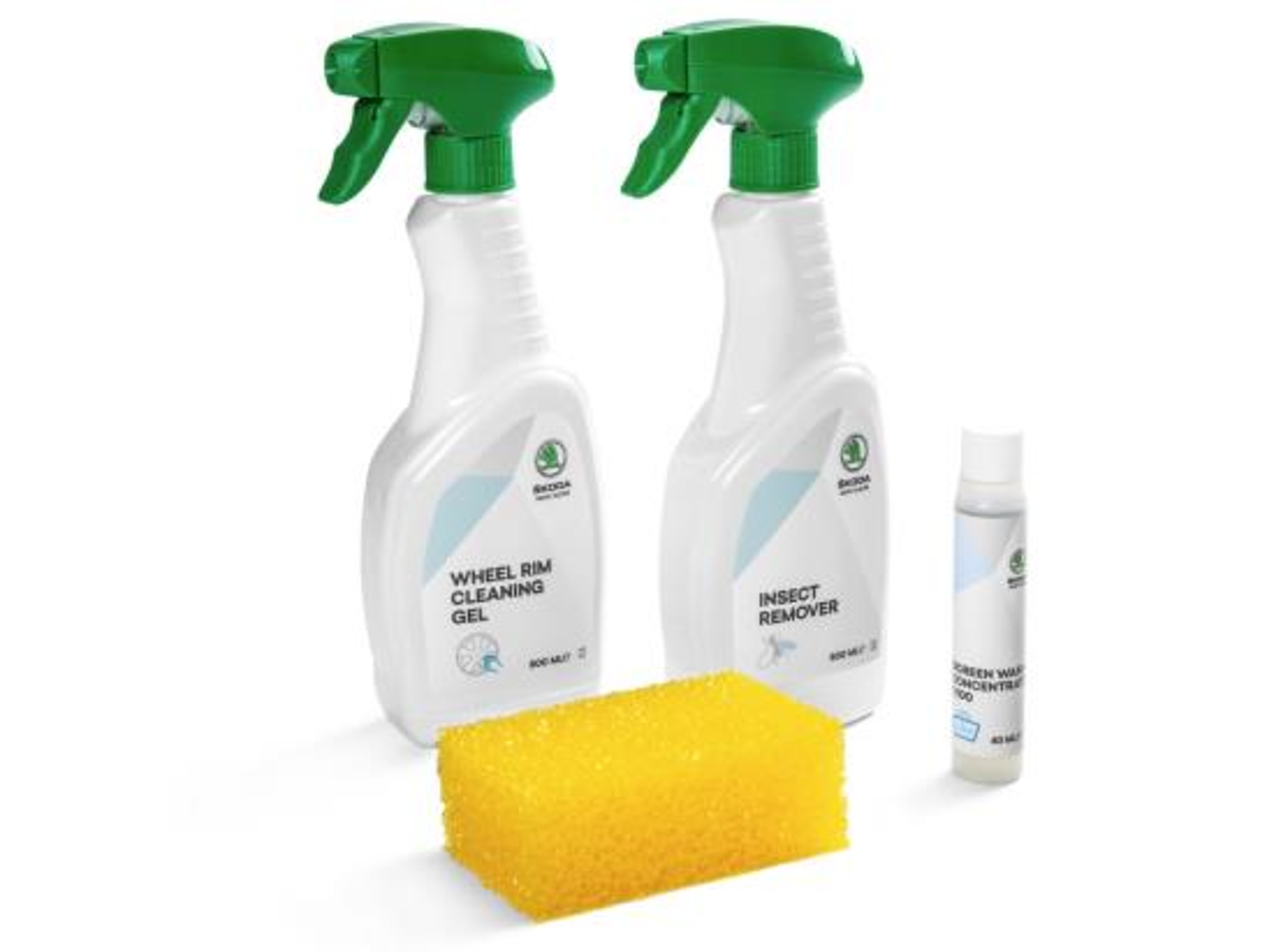 Geef uw Škoda de best mogelijke verzorging. Samen met deze autoverzorgingsset van Škoda Original Accessories ontvangt u de complete set producten voor het reinigen en polijsten van uw auto in de zomer. De zomerverzorgingsset bevat ruitensproeiervloeistof 1:100, velgenreiniger, insectenverwijderaar en insectenspons. De samenstelling en gebruiksaanwijzing zijn beschikbaar. Houd het product rechtop, anders kan de inhoud morsen. In tegenstelling tot diverse alternatieven, geeft de originele autoverzorgingsset u de zekerheid dat de gebruikte producten uw auto er echt als nieuw uit laten zien. Alle producten hebben strenge tests ondergaan, wat hun hoge effectiviteit en onschadelijkheid voor uw Škoda garandeert.