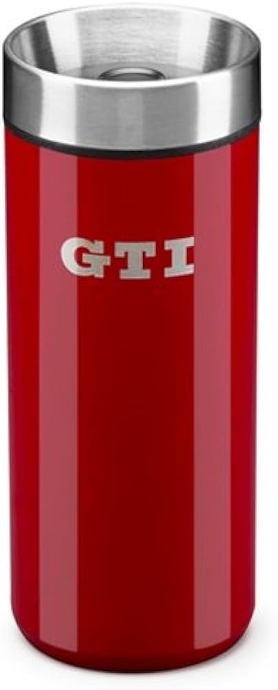 De GTI-thermosbeker, ontworpen door Volkswagen Design, heeft een glanzend oppervlak in Tornado-rood en is lasergegraveerd met de zilverkleurige GTI-letters. De dubbelwandige beker is voorzien van een vacuümsysteem waardoor de temperatuur van de beker altijd warm of koud blijft.